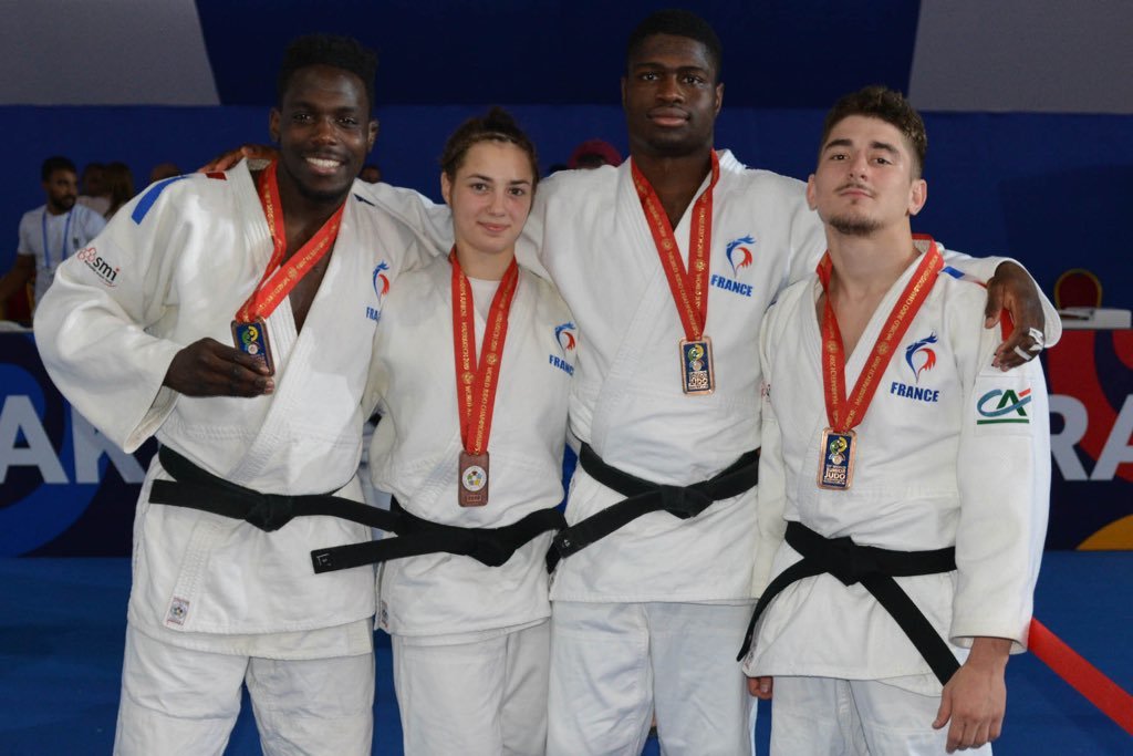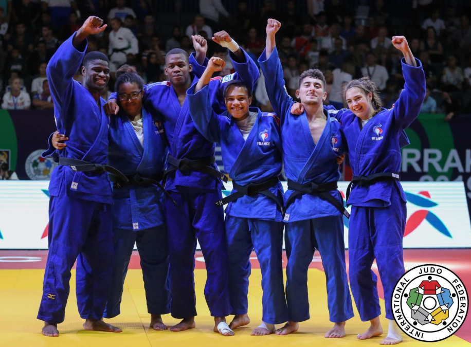Pas le temps pour les regrets, place aux équipes mixtes, où notre combattant est titulaire cette fois-ci en -73kg. En quart de finale, la France est opposé à l’Allemagne qui a sorti en 8ème de finale l’Ouzbékistan. Il y a un partout lorsque Dakayev monte sur le tapis face à Killian Ochs, 3ème du championnat d’Europe 2019 par équipes mixtes. Israil ne fait pas de détail et marque deux waza-ari qui lui valent ippon en moins d’une minute. La France passe 4 victoires à 2 et se qualifie pour les demi-finales. Dans celle-ci ce sera le favori de la compétition, le Japon. La France mène 1 à 0 suite à la victoire d’Ophélie Vellozzi. Notre judoka rencontre Ryo Tsukamoto, vice-champion du monde juniors 2018 et champion du monde par équipes mixtes la même année. Israil prend rapidement waza-ari (gros avantage) et se fait étrangler à 1 minute 40 de la fin du combat. La France s’inclinera 4 à 2. Les voici donc en place de 3ème face à la redoutable équipe du brésil. Dakayev est le premier à combattre face à Jeferson Santos Junior, tout récent 5ème de ce championnat du monde. Le combat est âprement disputé mais Israil arrive à étrangler son adversaire pour scorer ippon sur son spécial au sol à 1 minute 20 de la fin du combat. La France remportera la victoire 4 à 2 et termine sur la troisième marche du podium.