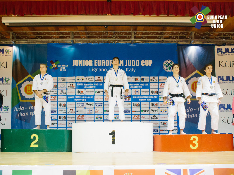 Notre combattant du Tarbes Pyrénées Judo était inscrit en -66kg où il y avait 72 combattants. En 32ème de finale il rencontre l'italien Raffaele Stefanelli et gagne par ippon sur un contre. En 16ème de finale, il gagne encore son combat en marquant waza-ari (gros avantage) sur kata-guruma (technique d’épaule) et ippon sur un étranglement au sol face à l’espagnol Ricardo Casas Fernandez championnat d’Espagne cadets et vice-champion juniors en 2015 et classé 16ème mondial. En 8ème de finale, il est opposé à l’italien Fedoardo Mella (futur 3ème). Dans un match très disputé, rien n’est marqué dans le temps règlementaire et place au golden-score. Dans celui-ci, Israil parvient à marquer waza-ari sur ko-uchi-gari (mouvement de jambe). En quart de finale, il s’offre l’italien Lorenzo Coceancigh sur un magnifique ippon-seoi-nage à genoux (mouvement d’épaule) en seulement 30 secondes de combat. En demi-finale, la tâche s’annonce compliquée face au combattant russe Kazbek Naguchev (futur 3ème) champion d’Europe et du monde cadets 2017. Notre tarbais ne se laisse pas impressionner et fait jeu égal avec le russe puisque rien n’est marqué durant les 4 minutes de combats. Place au golden-score et là encore le combat est acharné. Au bout de 2 minutes 53 de plus, le russe lance une technique de hanche et Israil contre pour marquer waza-ari qui l’envoi en finale. Dans celle-ci, ce sera le combattant hongrois Akos Kozma, champion de Hongrie cadets en 2015, juniors en 2016, 3ème en seniors 2017 et 12ème mondial. Au début du match, Kozma gène Israil et manque de l’étrangler au sol. Mais rien ne pouvait arriver à notre judoka ce jour-là et sur la séquence suivante il réussit un magnifique enchainement sur ippon-ko-uchi-maki-komi (attaque avant/arrière) et marque ippon. Pour sa première participation à un European Cup, Israil Dakayev monte sur la plus haute marche du podium et peut savourer sa victoire avec sa première Marseillaise. A noter qu’il a rencontré et battu tous les judokas du podium.