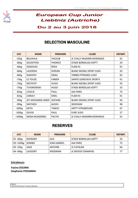 Israil Dakayev vient d’être sélectionné en équipe de France pour l’European Cup Juniors de Liebtniz en Autriche le 2 et 3 juin prochain. Un grand bravo à lui !!!