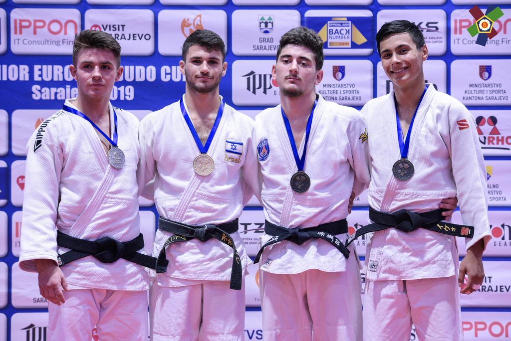 Notre tarbais ancien pensionnaire du Tarbes Pyrénées Judo, junior 3ème année, était inscrit en -66kg où il y avait 26 combattants. En 8ème de finale, il sort le hollandais Tycho Muhlack, vice-champion des Pays-Bas cadets 2018 et juniors 2019, en marquant deux waza-ari (gros avantage) sur tai-otoshi (mouvement de bras) en seulement 1 minutes 20 de combat. En quart de finale, il est opposé à l’un des favoris le néerlandais Ivo Verhorstert (futur 3ème), vice-champion des Pays-Bas juniors 2017 et 2018, champion en seniors 2018 et vainqueur de l’European Cup de Lignano juniors cette année. En début de match notre tarbais score waza-ari mais celui-ci est compté à son adversaire. Sur la séquence suivante, Israil met un énorme sode-sturi-komi-goshi (mouvement de hanche) et marque ippon, mais l’arbitre annule et pénalise notre combattant pour avoir touché la jambe de son adversaire. Les décisions de l’arbitre ne sont pas en sa faveur mais Israil ne lâche rien et contre son adversaire pour égaliser. Verhorstert lance alors une technique de sacrifice qui lui vaut waza-ari et se qualifie donc en demi-finale. Israil sort du tapis avec un gros sentiment d’injustice et est très remonté pour la suite de la compétition. En demi-finale de repêchage, il sort le turc Nuri Huseyin Cetinkoz, champion de Turquie cadets 2019, en 11 secondes de match sur un gros contre. En finale de repêchage, c’est au tour du croate Robert Klacar, champion de Croatie juniors et seniors 2019, de prendre la foudre Dakayev avec deux waza-ari marqués en 1 minutes 14 de combat. Israil combattra donc pour la place de 3ème face à son partenaire de club du PSG Judo et de l’INSEP Yhonice Goueffon, champion de France juniors 2018 et 3ème cette année de l’European Cup juniors de Coimbra. Les deux judokas se connaissent par cœur et le combat est très serré. Il faut attendre le golden score et 6 minutes 42 de match pour qu’Israil trouve la solution sur uchi-mata (mouvement de hanche) qui lui vaut waza-ari et l’envoie sur la 3ème marche du podium.