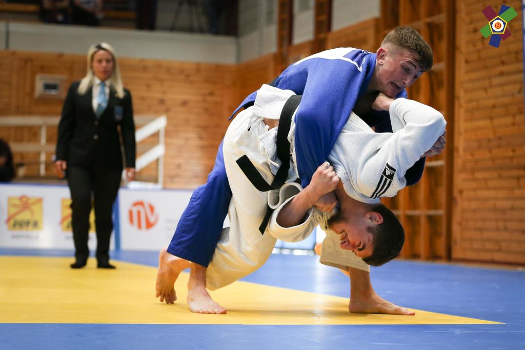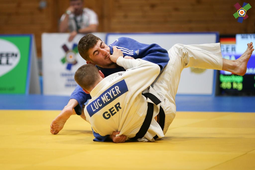 Notre tarbais ancien pensionnaire du Tarbes Pyrénées Judo, junior 3ème année, était inscrit en -66kg où il y avait 64 combattants. En 32ème de finale, il sort le géorgien Saba Kapanadze, champion d’Europe par équipes cadets 2017, sur un mouvement d’épaule qui lui vaut waza-ari (gros avantage) à 14 secondes de la fin alors que les deux combattants étaient à égalité une pénalité partout. En 16ème, il est opposé à l’ukrainien Mykhailo Romanov tombeur de l’italien Federico Cuniberti champion d’Italie 2019 et vainqueur de l’European Cup de Malaga il y a deux semaines. Romanov prend une pénalité en début de combat et Israil parvient à l’immobiliser sur son retournement favori compté 19 secondes qui lui score ainsi waza-ari. A une minute de la fin, l’ukrainien lance une attaque et notre tarbais suit bien sur la liaison au sol pour l’étrangler et marquer ippon. En 8ème, il prend l’anglais Henry Wakes, 3ème de l’European Cup de Kaunas début mai. Israil fait un bon début de match et marque waza-ari d’entrée sur la première séquence sur un mouvement de hanche, mais Wakes égalise à 1 minute 20 de la fin. Notre combattant prend ensuite deux pénalités et place donc au golden score. Obligé d’être sur l’attaque, notre judoka ne lâche rien et marque rapidement un deuxième waza-ari qui lui vaut ippon. En quart de finale, place au letton Artjoms Galaktionovs 4ème mondial et champion d’Europe Cadets 2016. Galaktionovs est pénalisé d’entrée pour une attaque dans les jambes, mais Israil en prend deux en suivant face aux attaques répétées de son adversaire qui ne le laisse pas s’exprimer. Le letton marque ensuite un waza-ri grâce à son judo explosif mais est pénalisé à son tour pour fausse attaque. Sur la séquence suivante, le combattant des pays baltes score encore waza-ari qui lui vaut ippon. Israil n’a jamais pu faire son judo sur ce combat face à la puissance de son adversaire. En repêchage, notre tarbais gagne sur deux contres face à l’allemand Luc Meyer, double champion d’Allemagne cadets 2015 et 2017 et 3ème cette année de l’European Cup de Lignano. Le voici donc en finale de repêchage face au redoutable brésilien William Lima, champion du brésil et Panaméricain cadets 2017. En début de match, Israil multiplie le travail au sol mais sur une attaque à la limite de la correction du brésilien notre combattant est touché à l’épaule. Israil serre les dents mais est diminué physiquement et prend une pénalité à une minute de la fin. Puis c’est au tour de Lima d’en prendre une pour fausse attaque. Plus rien ne sera marqué et place au golden score. Sur la première séquence de celui-ci, Lima lance une technique encore limite mélangée à une clé d’épaule où Israil hurle de douleur et est contraint d’abandonner. Grosse déception pour notre tarbais, blessé et qui sera éloigné des tatamis pour au moins trois semaines.
