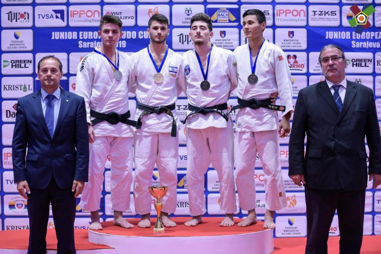 Notre tarbais ancien pensionnaire du Tarbes Pyrénées Judo, junior 3ème année, était inscrit en -66kg où il y avait 26 combattants. En 8ème de finale, il sort le hollandais Tycho Muhlack, vice-champion des Pays-Bas cadets 2018 et juniors 2019, en marquant deux waza-ari (gros avantage) sur tai-otoshi (mouvement de bras) en seulement 1 minutes 20 de combat. En quart de finale, il est opposé à l’un des favoris le néerlandais Ivo Verhorstert (futur 3ème), vice-champion des Pays-Bas juniors 2017 et 2018, champion en seniors 2018 et vainqueur de l’European Cup de Lignano juniors cette année. En début de match notre tarbais score waza-ari mais celui-ci est compté à son adversaire. Sur la séquence suivante, Israil met un énorme sode-sturi-komi-goshi (mouvement de hanche) et marque ippon, mais l’arbitre annule et pénalise notre combattant pour avoir touché la jambe de son adversaire. Les décisions de l’arbitre ne sont pas en sa faveur mais Israil ne lâche rien et contre son adversaire pour égaliser. Verhorstert lance alors une technique de sacrifice qui lui vaut waza-ari et se qualifie donc en demi-finale. Israil sort du tapis avec un gros sentiment d’injustice et est très remonté pour la suite de la compétition. En demi-finale de repêchage, il sort le turc Nuri Huseyin Cetinkoz, champion de Turquie cadets 2019, en 11 secondes de match sur un gros contre. En finale de repêchage, c’est au tour du croate Robert Klacar, champion de Croatie juniors et seniors 2019, de prendre la foudre Dakayev avec deux waza-ari marqués en 1 minutes 14 de combat. Israil combattra donc pour la place de 3ème face à son partenaire de club du PSG Judo et de l’INSEP Yhonice Goueffon, champion de France juniors 2018 et 3ème cette année de l’European Cup juniors de Coimbra. Les deux judokas se connaissent par cœur et le combat est très serré. Il faut attendre le golden score et 6 minutes 42 de match pour qu’Israil trouve la solution sur uchi-mata (mouvement de hanche) qui lui vaut waza-ari et l’envoie sur la 3ème marche du podium.
