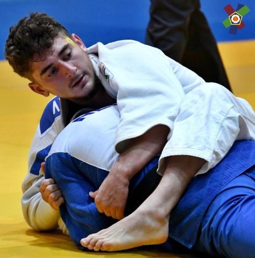 Notre tarbais était inscrit en -66kg où il y avait 43 combattants. En 32ème de finale, il gagne sur étranglement en début de combat face à l’autrichien Benedikt Safer, 3ème du championnat d’Autriche 2016. En 16ème, il remporte son combat encore par ippon face à l’israélien Rom Hovav. En 8ème, place au hollandais Matthijs Van Harten, champion des Pays-Bas 2017 et 2018 et multiple médaillé sur des European Cup. Israil démarre bien et marque ippon sur la première séquence mais après la vidéo les arbitres corrigent par waza-ari (moyen avantage). A mi-combat, c’est au tour du hollandais de marquer ippon corrigé immédiatement par waza-ari. Les deux combattants sont à égalité et plus rien ne sera marqué. Nous voici donc au golden score où Israil trouvera rapidement la solution en contrant son adversaire pour scorer ippon. En quart de finale, il rencontre l’italien Carmine Di Loreto (futur vainqueur), 3ème du championnat d’Italie 2019 et lui aussi ayant remportait de nombreuses médailles sur les European Cup. Israil fait jeu égal avec son adversaire mais à quelques secondes de la fin, alors que les deux combattants sont à égalité, notre tarbais tente de contrer son adversaire. L’arbitre consulte la vidéo et met un waza-ari inexistant à l’italien que notre judoka ne pourra remonter. En repêchage, il sort l’allemand Severin Edmeier sur deux mouvements de hanche et d’épaule qui lui valent ippon. En finale de repêchage, la tâche s’annonce compliquée face au rugueux slovène Matjaz Trbovc, vainqueur en mai de l’European Cup Seniors de Sarajevo. En début de match sur un travail au sol de notre tarbais, le slovène réussi à prendre en immobilisation Israil qui arrive à sortir. Trbovc enchaîne sur une clé de bras mais notre judoka défend en se relevant. L’arbitre n’annonce pas matte (arrêt du combat) et le slovène très opportuniste lance une attaque de hanche qui lui vaut ippon.