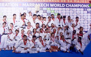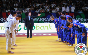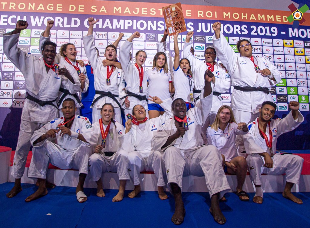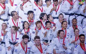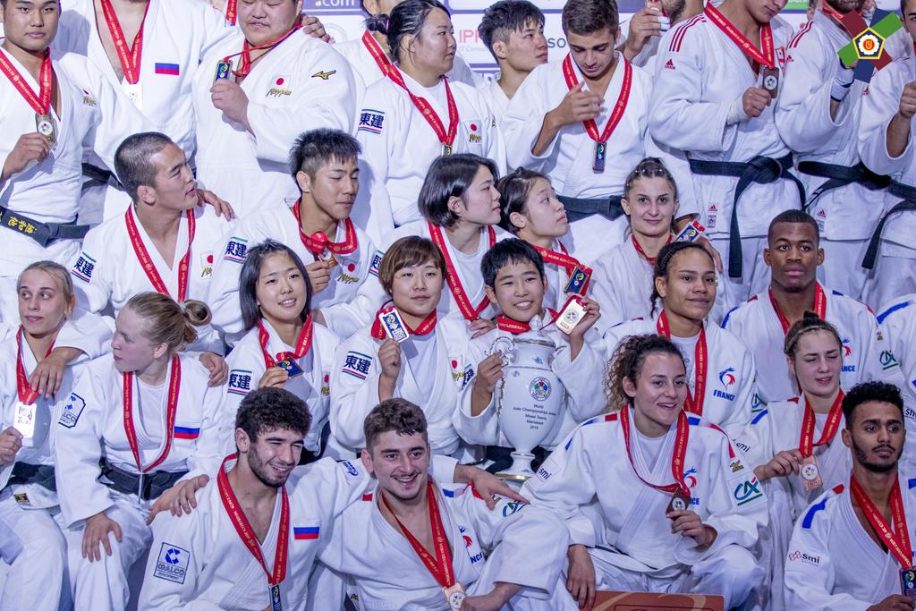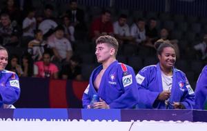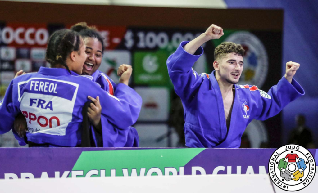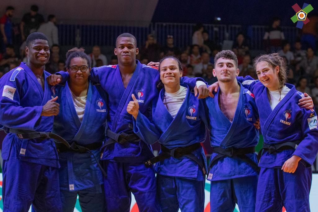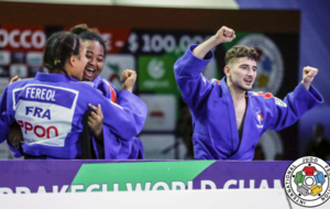 Pas le temps pour les regrets, place aux équipes mixtes, où notre combattant est titulaire cette fois-ci en -73kg. En quart de finale, la France est opposé à l’Allemagne qui a sorti en 8ème de finale l’Ouzbékistan. Il y a un partout lorsque Dakayev monte sur le tapis face à Killian Ochs, 3ème du championnat d’Europe 2019 par équipes mixtes. Israil ne fait pas de détail et marque deux waza-ari qui lui valent ippon en moins d’une minute. La France passe 4 victoires à 2 et se qualifie pour les demi-finales. Dans celle-ci ce sera le favori de la compétition, le Japon. La France mène 1 à 0 suite à la victoire d’Ophélie Vellozzi. Notre judoka rencontre Ryo Tsukamoto, vice-champion du monde juniors 2018 et champion du monde par équipes mixtes la même année. Israil prend rapidement waza-ari (gros avantage) et se fait étrangler à 1 minute 40 de la fin du combat. La France s’inclinera 4 à 2. Les voici donc en place de 3ème face à la redoutable équipe du brésil. Dakayev est le premier à combattre face à Jeferson Santos Junior, tout récent 5ème de ce championnat du monde. Le combat est âprement disputé mais Israil arrive à étrangler son adversaire pour scorer ippon sur son spécial au sol à 1 minute 20 de la fin du combat. La France remportera la victoire 4 à 2 et termine sur la troisième marche du podium.