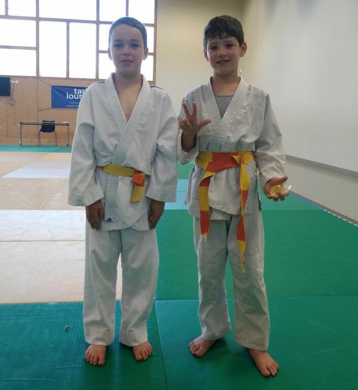 Quatre de nos mini-poussins et quatre de nos poussins étaient présents. Ils se sont bien comportés et ont eu de très bons résultats. Ils étaient notés sur une partie debout avec des démonstrations de techniques d'épaule et de bras ainsi que sur du travail au sol et des combats.