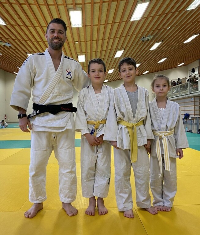 Cinq de nos mini-poussins et six de nos poussins étaient présents. Ils se sont bien comportés et ont eu de très bons résultats. Ils étaient notés sur une partie debout avec des démonstrations de techniques de jambes ainsi que sur du travail au sol et des combats.